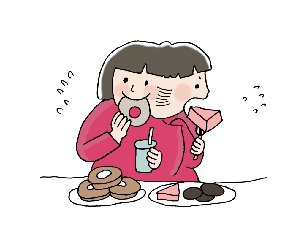 - 空腹やストレスにより過食が発生。